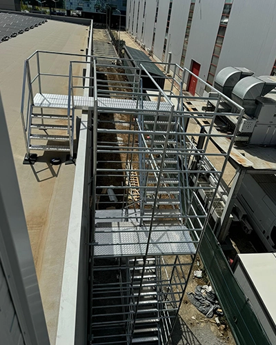 Structura a fost concepută modular, astfel încât scara interioară și scara de vârf să poată fi folosite și separat în alte proiecte. Astfel, clientul beneficiază de o investiție eficientă și reutilizabilă, adaptabilă pe diverse șantiere. Fiecare element se montează rapid, fără suduri sau prinderi permanente.